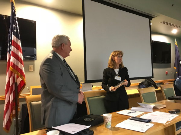 Bob Beasley, Session #194 was presented with a plaque of appreciation by President Shirley Coté, Session #164 for the past year as the Secretary/Treasurer.